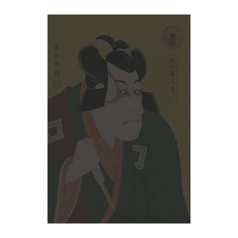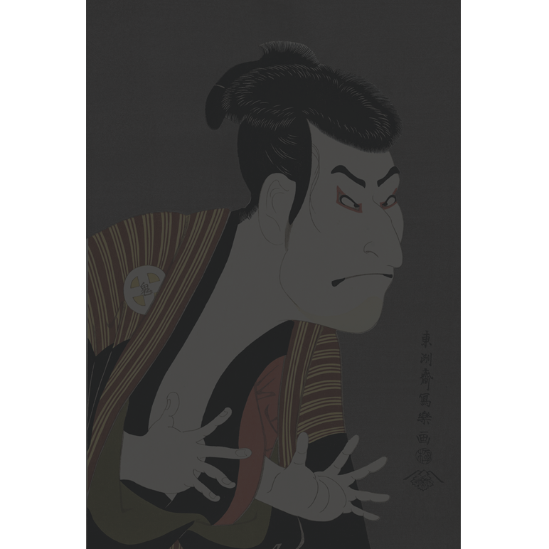 写楽の正体についてはこれまで様々な説が挙げられてきましたが、現在では阿波の能役者・斎藤十郎兵衛であったという説が定着しています。しかし、その活動にはなお多くの不明点があり、写楽が「謎の浮世絵師」であることに変わりはありません。アダチ版画研究所では、このミステリアスな絵師が後世に残した作品全図を復刻しています。