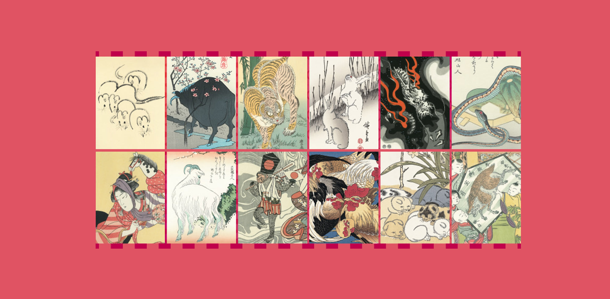 生まれ年によって割り当てられる十二種類の動物「十二支」。日本では馴染み深い干支ですが、実は欧米ではあまり良く知られていません。浮世絵には十二支の動物を描いた色々な作品があります。その年の干支とは関係なく、自分や大切な人の十二支をお部屋に飾ってみてはいかがでしょうか?