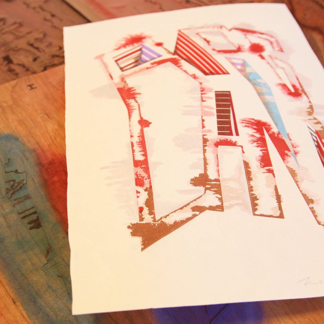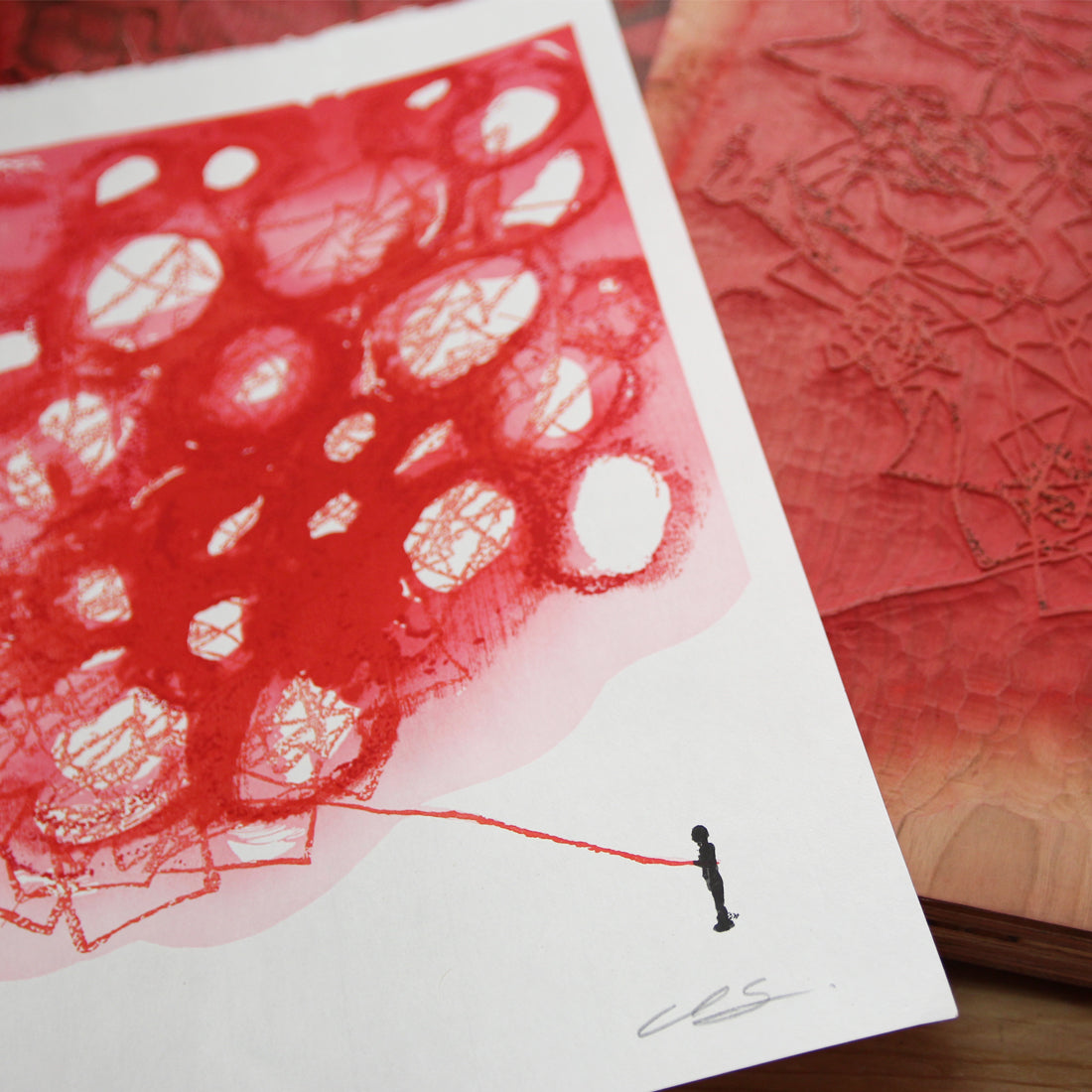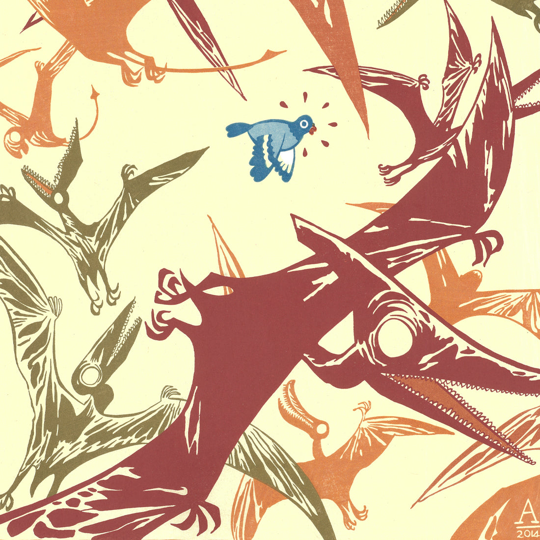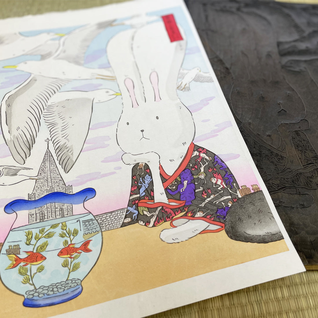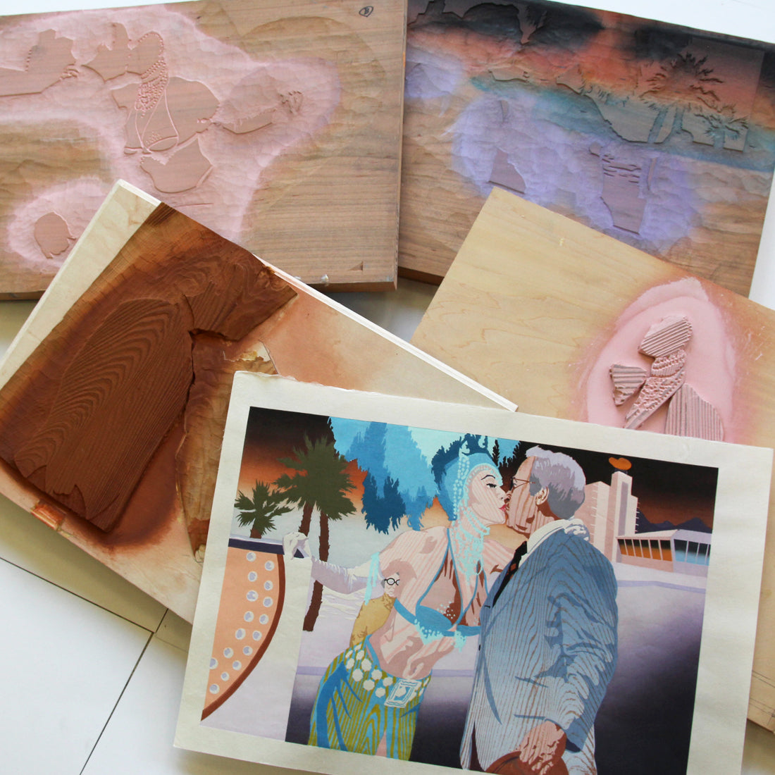 Created using traditional woodcut print techniques