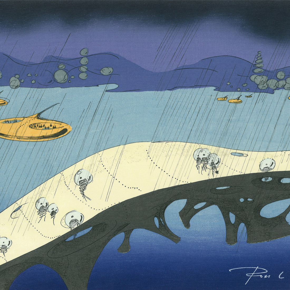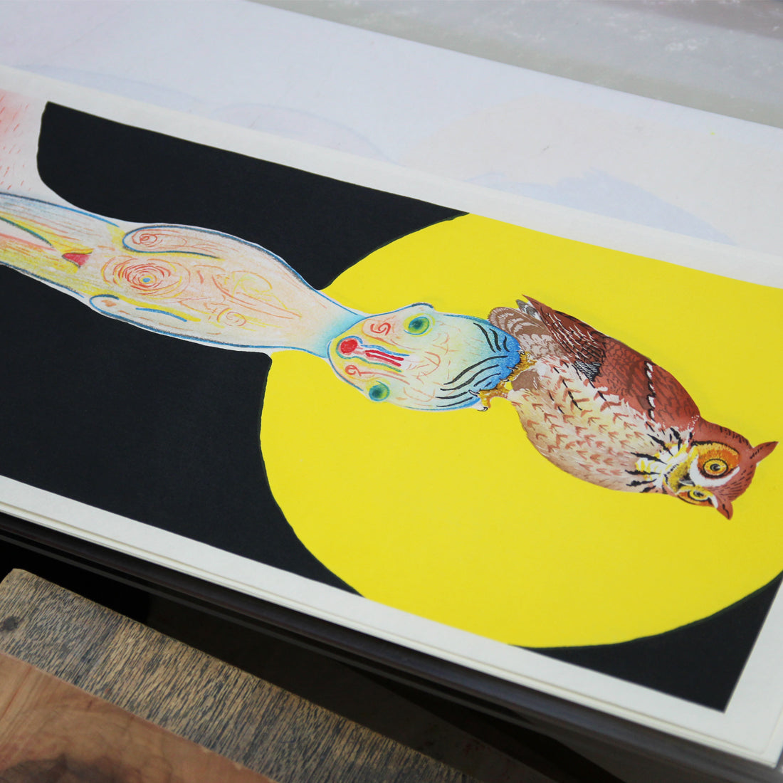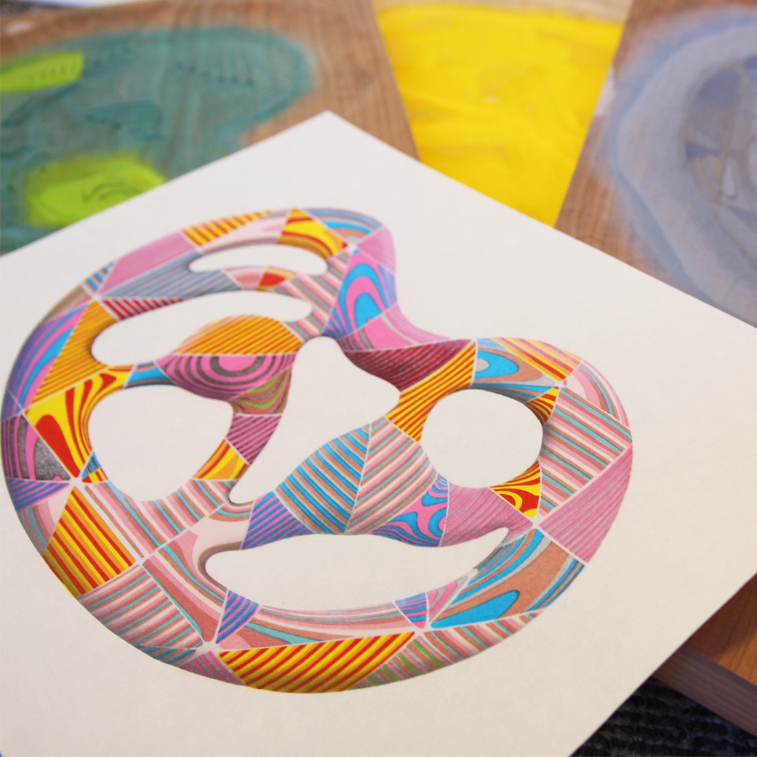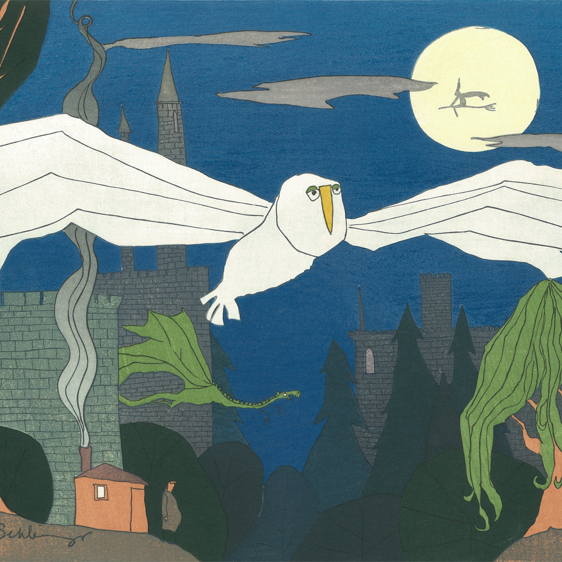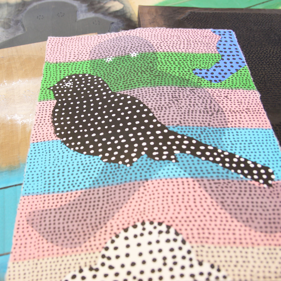 Created using traditional woodcut print techniques