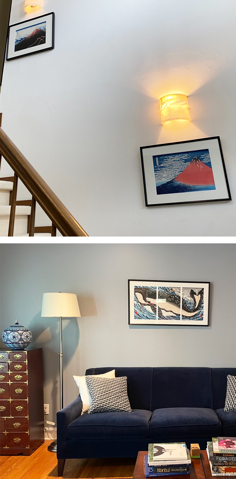 "I gave my mother Hokusai's "Red Fuji" and "Mt.Fuji Above the Lightning". She was very happy and has them displayed on the wall of the stairs leading from the entrance.