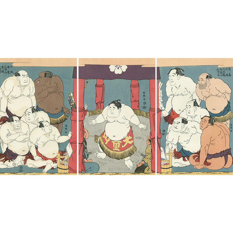 Daidozan Performing the Ring Entering Ceremony (triptych)