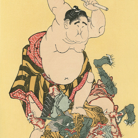 a young wrestler who gained popularity in Edo after performing the ring-entering ceremony in kanjin-zumo (promotional sumo) at the age of seven. He also created memorial prints honoring beloved actors who had passed away.