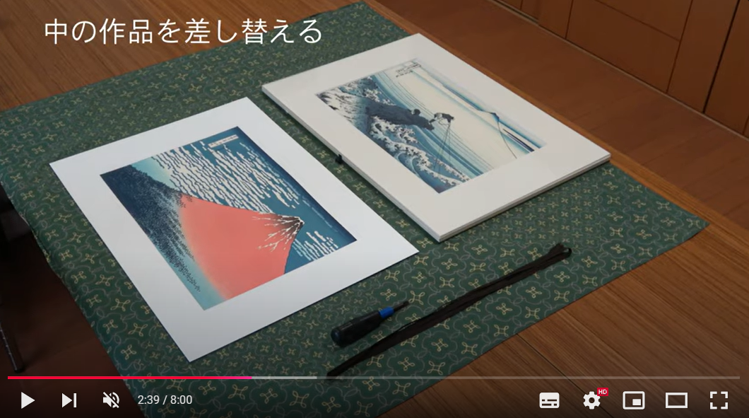 Adachi's frame has a detachable backboard and you can easily change the framed print as you like. The instruction will be included in the set.