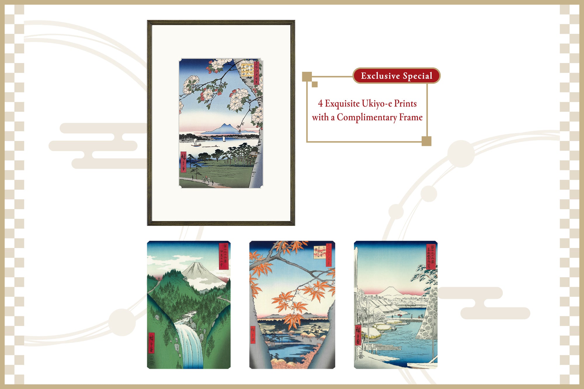 Exclusive Special: "4 Exquisite Ukiyo-e Prints with a Complimentary Frame"