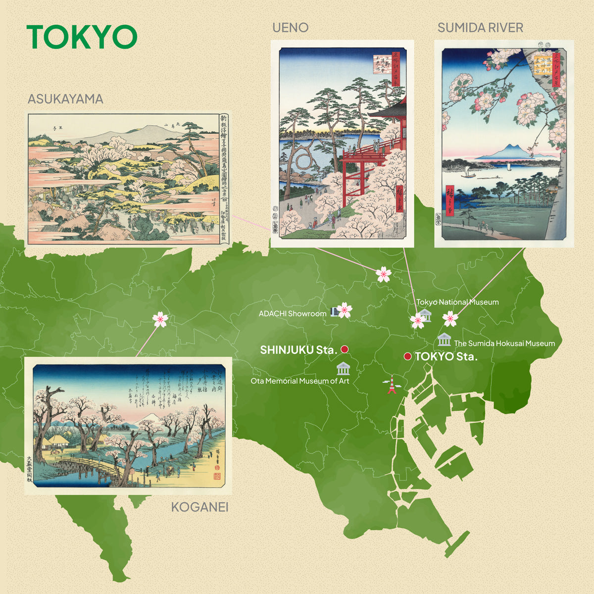 アダチ版画のショールームがある目白・下落合エリアにも、おすすめのお花見スポットが。ショールームでも、春には浮世絵の桜をお楽しみいただけますので、ぜひお花見とあわせてお立ち寄りください!
